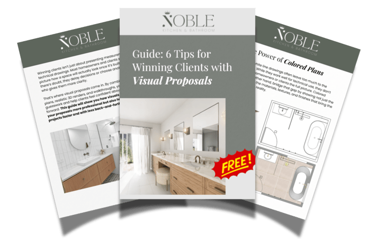At Noble Kitchen and Bath Designs, we go beyond standard black-and-white layouts by providing colored plans that show real finishes, fixtures, and tile details. This level of clarity helps homeowners make confident decisions and ensures every tradesman on site works from the same clear vision.